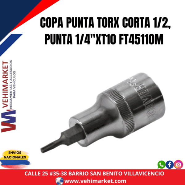 COPA PUNTA TORX CORTA 1/2, PUNTA 1/4″XT10