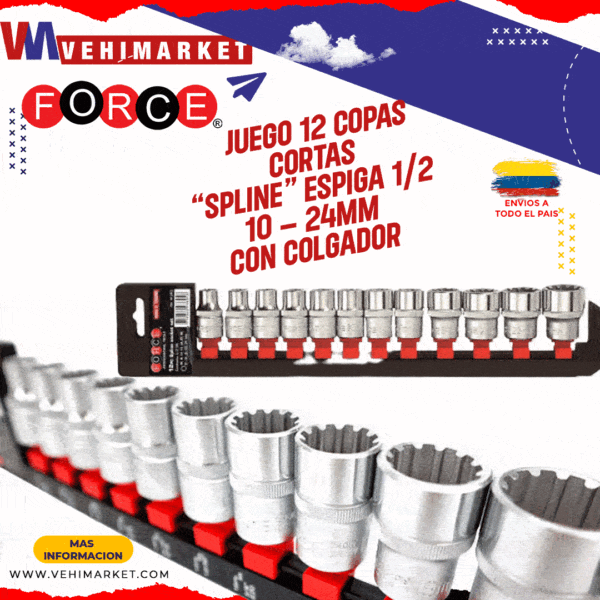 - Los tamaños incluyen: 10 mm, 12 mm, 13 mm, 14 mm, 15 mm, 16 mm, 17 mm, 18 mm, 19 mm, 21 mm, 22 mm y 24 mm
