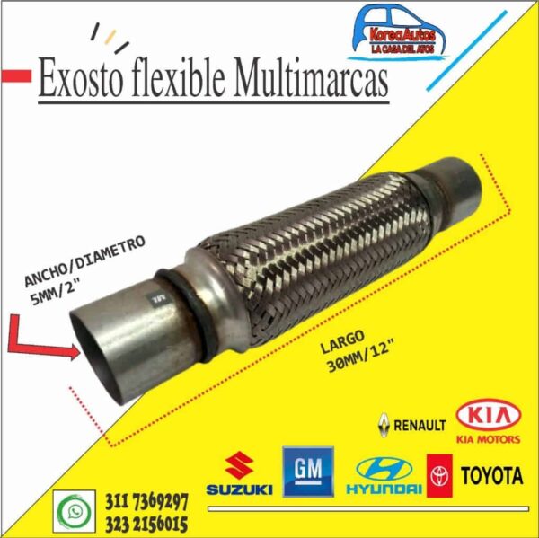 el exosto flexible se utiliza para conectar longitudes rígidas del tubo de escape evitando que la vibracion afecte el exosto y produzca ropturas causando escape de gases y humo
