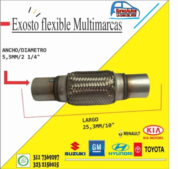 el exosto flaxible se utiliza para conectar longitudes rígidas del tubo de escape evitando que la vibracion afecte el exosto y produzca ropturas causando escape de gases y humo