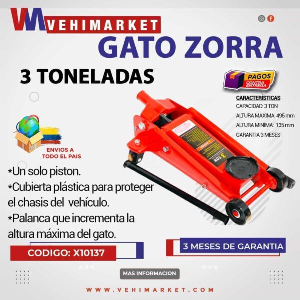 *Un solo piston.*Cubierta plástica para proteger el chasis del vehículo.*Palanca que incrementa la altura máxima del gato.