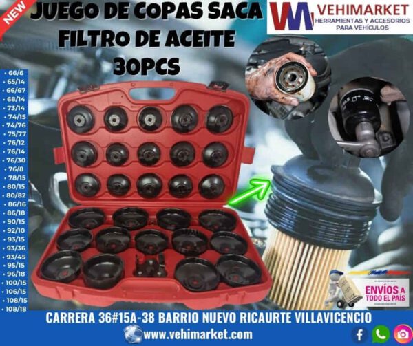 JUEGO DE COPAS SACA FILTRO DE ACEITE 30PCS