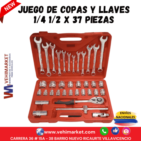 JUEGO DE COPAS Y LLAVES 1/4 1/2 X 37 PIEZAS