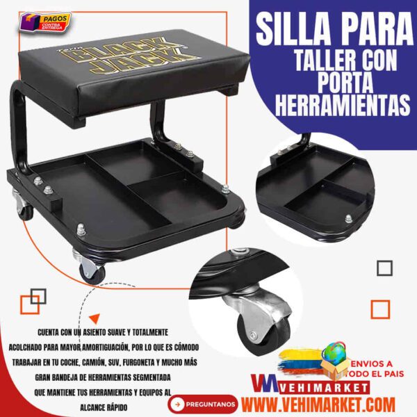 - Cuenta con un asiento suave y totalmente acolchado para mayor amortiguación, por lo que es cómodo trabajar en tu coche, camión, SUV, furgoneta y mucho más