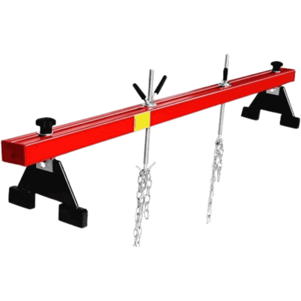 » Puente completo con cadenas para montaje y desmontaje de motores y transmisiones hasta 500 kg de peso. Los pies de apoyo cilíndricos evitan dañar las aletas u otras partes montadas de su vehículo.